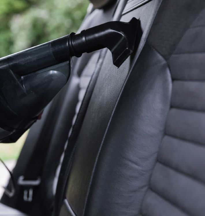 De autobekleding wordt eerst gestofzuigd en vervolgens ingespoten en geborsteld/geboend met reinigingsmiddel. Daarna worden de vlekken met een extractiemachine verwijderd.